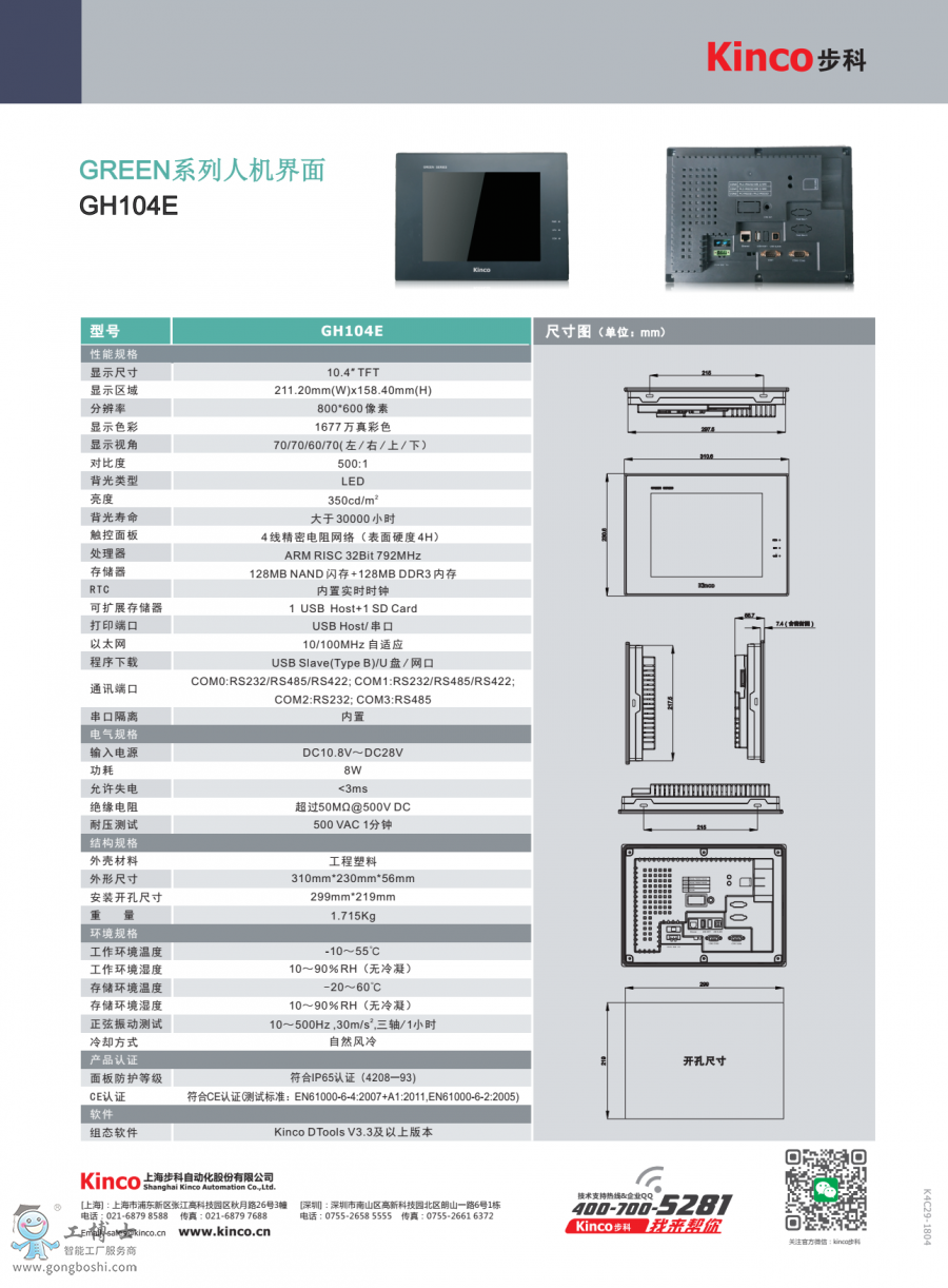Kinco步科觸摸屏GREEN系列GH104E|支持編程調試|售后維修 |