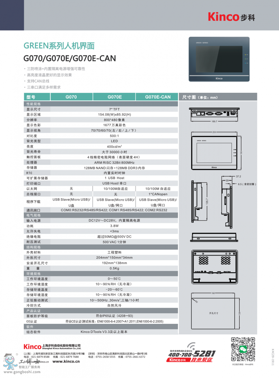 Kinco步科觸摸屏GREEN系列G070E|支持編程調試|售后維修 |