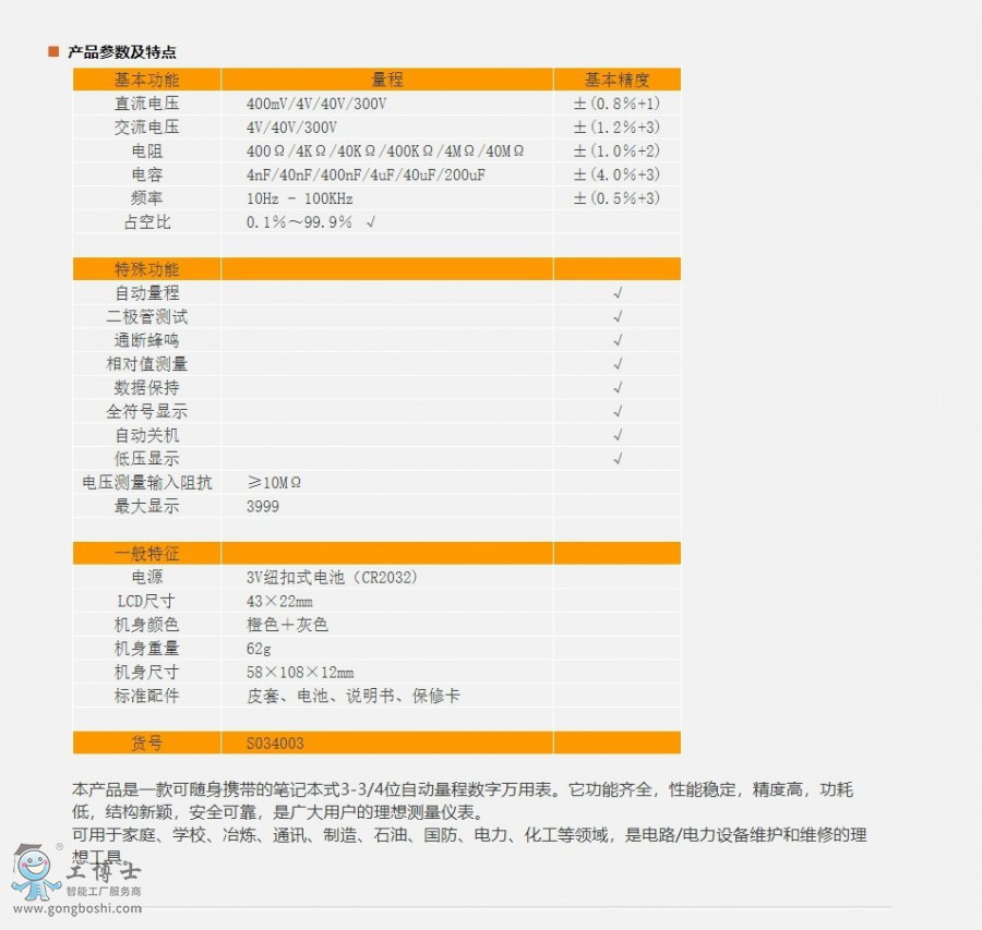 鋼盾迷你數字萬用表 貨號:S034003