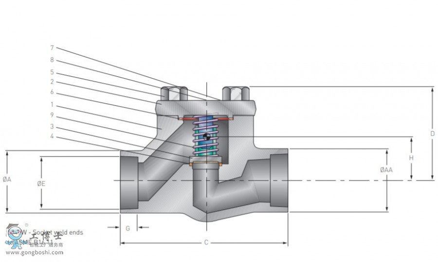8. 標準閥體和閥蓋材質為不銹鋼 (ASME SA105)。