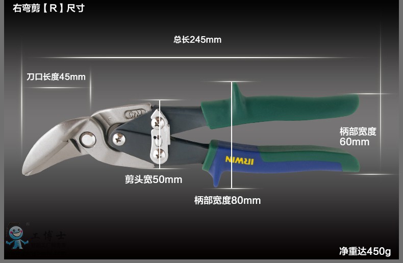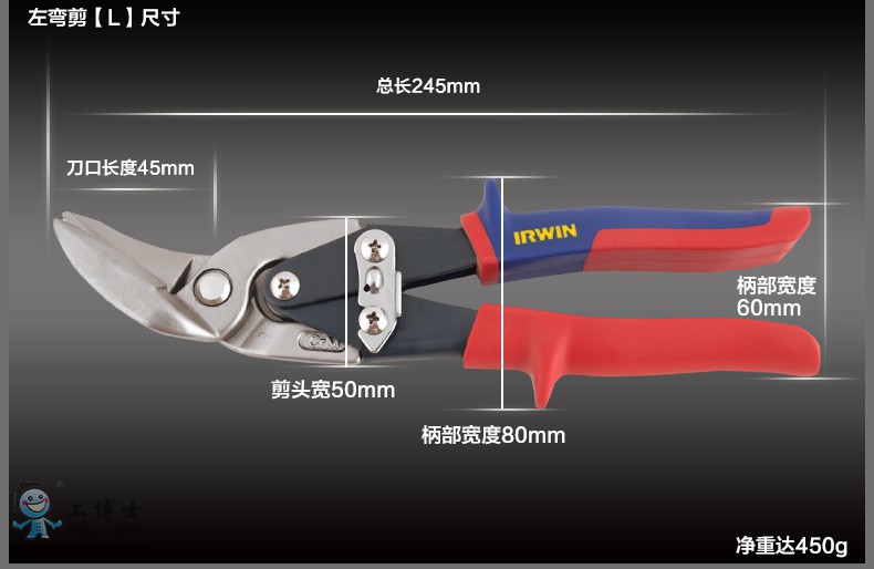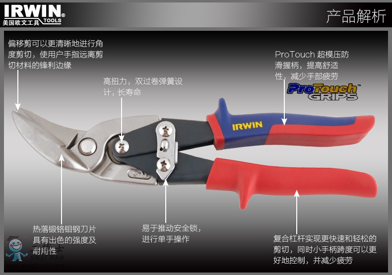 美國IRWIN歐文工具鐵皮剪刀偏移工業剪刀10504315N 10504316N