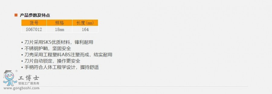 鋼盾18MM塑柄帶護套美工刀 貨號:S067012