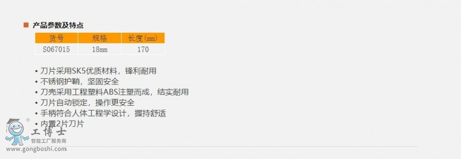 鋼盾18MM橡塑柄帶護套美工刀 貨號:S067015