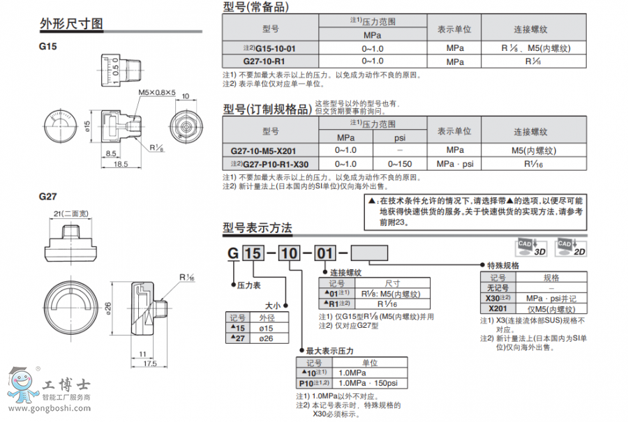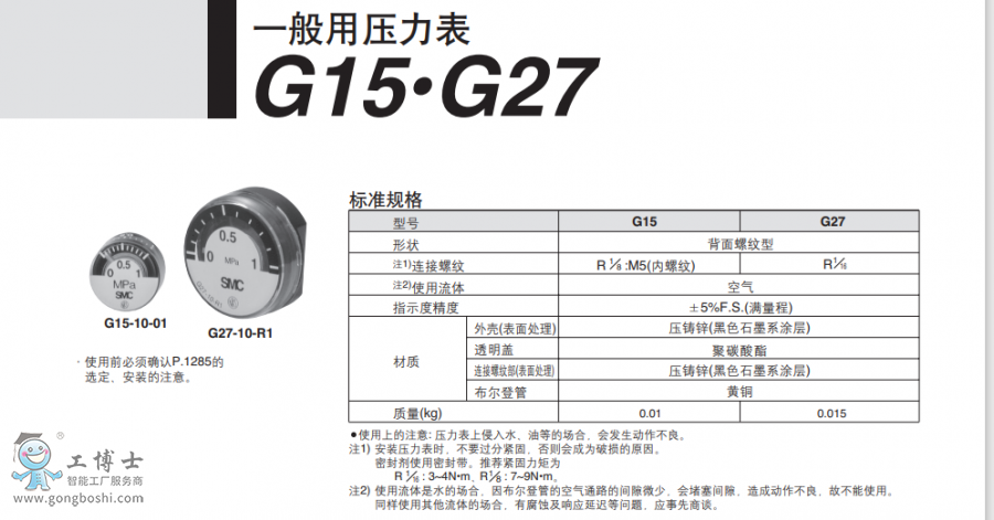 SMC壓力表 G15系列 G15-10-01