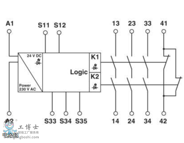 3個啟動電流通路,額定輸入電壓為230 V AC/DC,插拔式螺釘接線端子