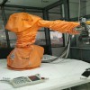 噴涂機(jī)器人代替人力操作,可提高噴涂質(zhì)量和材料的使用率,但是長期皂搓噴涂材料中的各類化學(xué)成份也將侵害機(jī)器人的手臂。特別是油漆泵,噴涂機(jī)器人在工作過程中,機(jī)器人本體不可避免地處于油漆噴霧易爆環(huán)境中,安裝噴涂機(jī)器人防護(hù)服使機(jī)器人隔離靜電、粉塵、易燃物的措施異常重要。