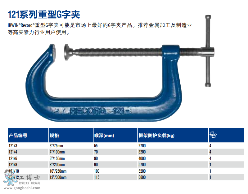 歐文121系列重型G字夾 121/3 121/4 121/6 121/8 121/10 121/12 |