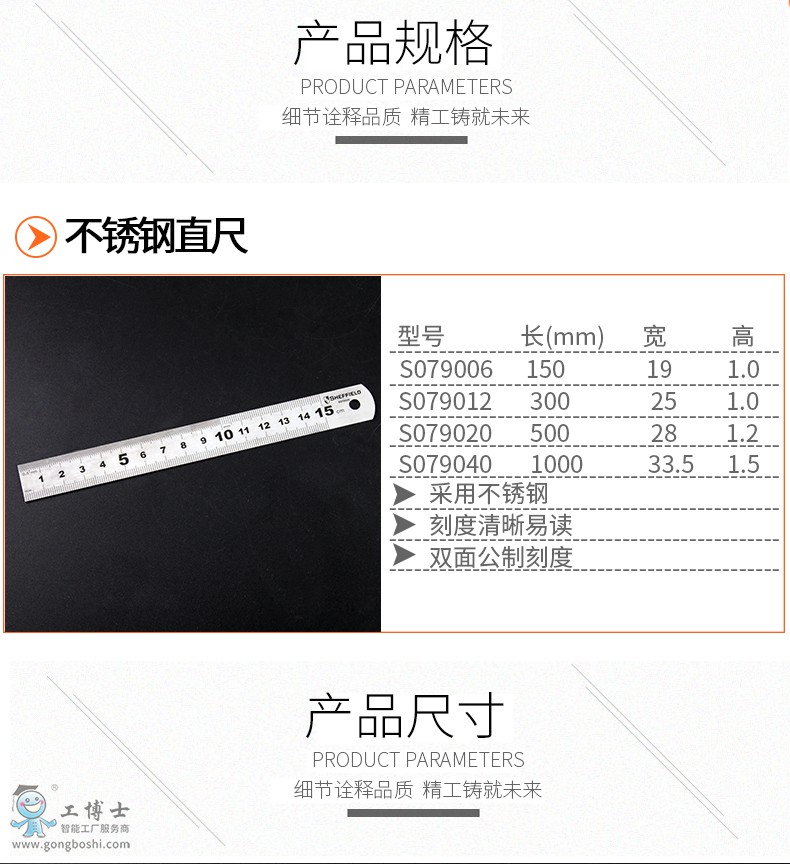 鋼盾鋼尺鋼板尺不銹鋼尺子加厚直尺S079006 S079012 S079020