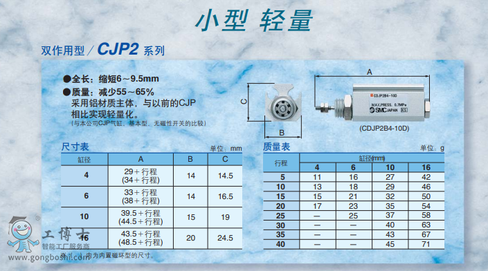 SMC氣缸 CJP2系列 CDJP2B4-10D