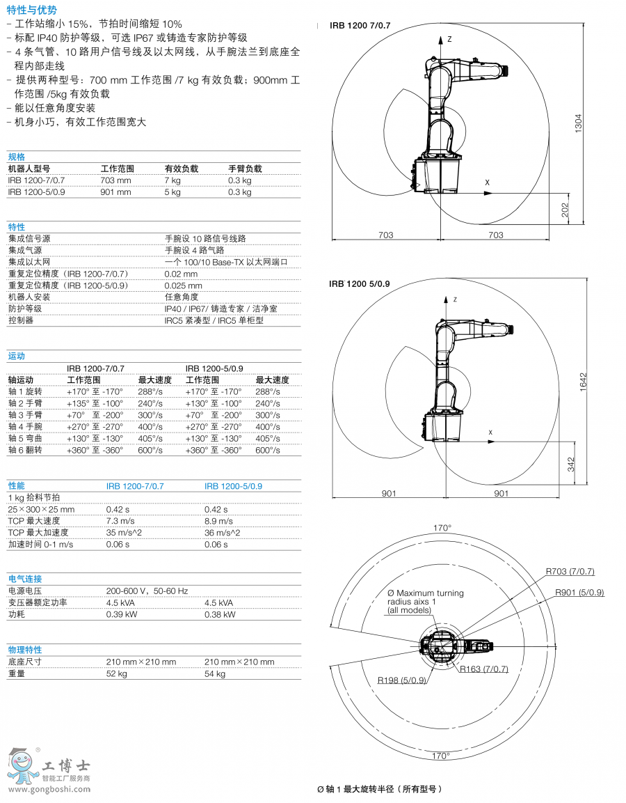 ABB機器人IRB 1200 負載5KG |