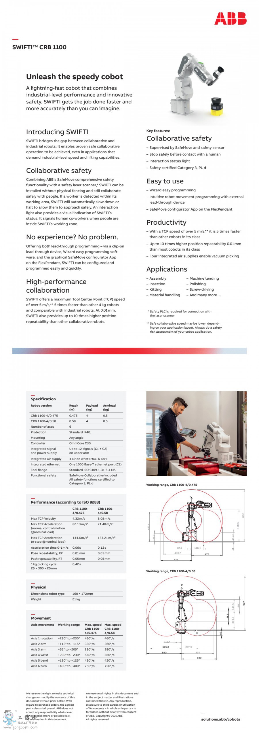 ABB工業(yè)機(jī)器人SWIFTI™ CRB 1100 |