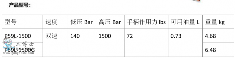 全新PowerTeam P59L-1500系列手動泵***大工作壓力1500bar,可運用于系統測試打壓,拉伸器動力源,過盈配合(無鍵連接)類軸承與軸、齒輪與軸的油壓安裝拆卸。
