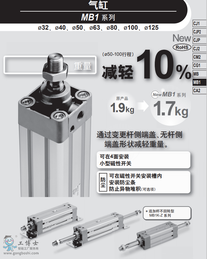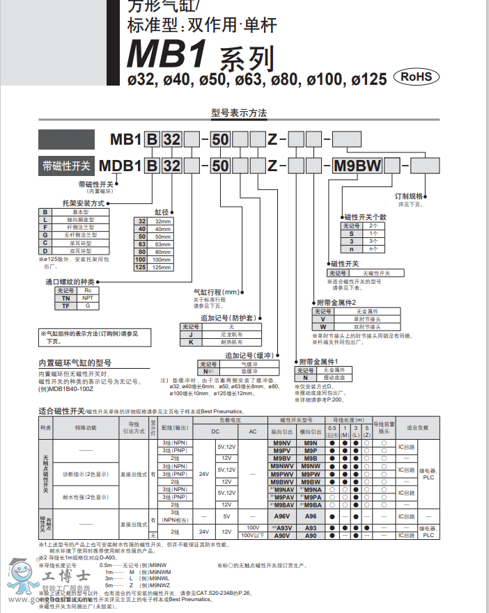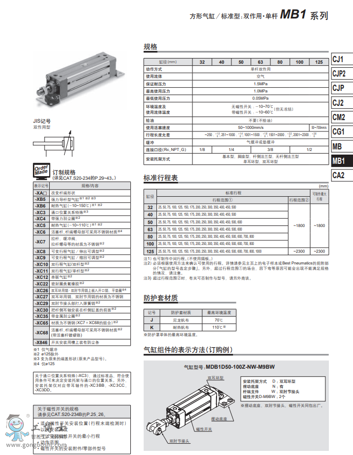 SMC氣缸 MB1-Z系列 MB1B125-50Z-NV