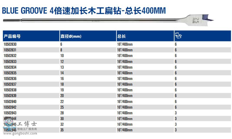 irwin歐文Blue Groove 4倍速加長木工扁鉆-總長400mm |