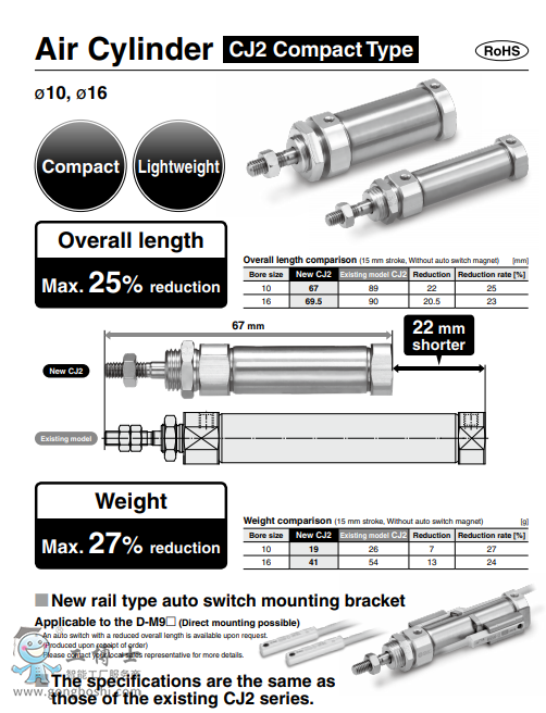 SMC 氣缸 CJ2緊湊型 CJ2-X3175 |