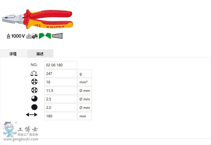 德國凱尼派克KNIPEX 省力型鋼絲鉗02 06 180
