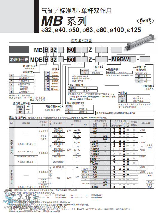 SMC 氣缸 MBB32J-50JNZ-NV-XB5 |