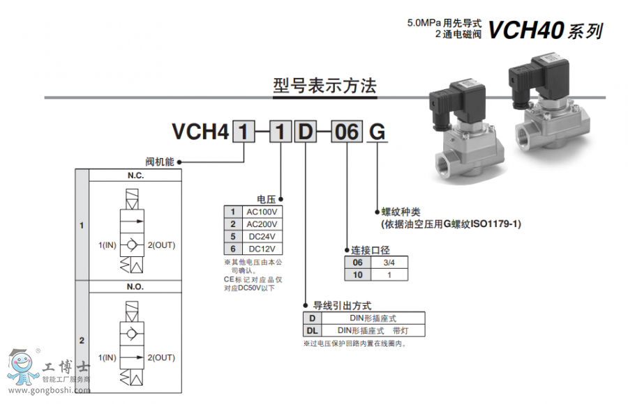SMC 5.0MPa 用先導(dǎo)式2通電磁閥 VCH42-6DL-10G