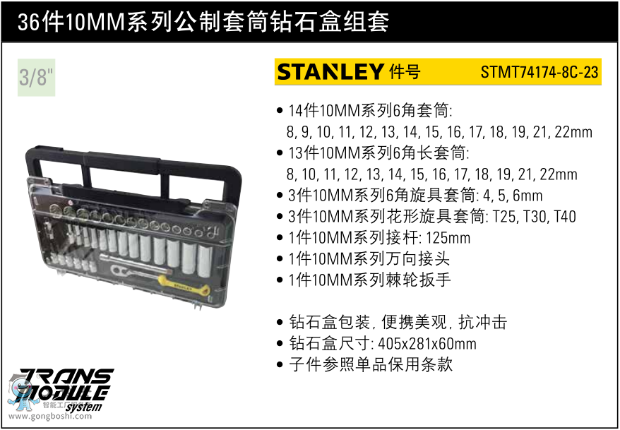 史丹利36件10MM系列公制套筒鉆石盒組套STMT74174-8C-23