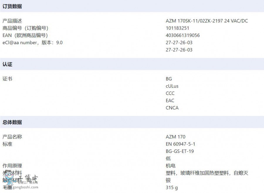 型號: AZM 170SK-11/02ZK-2197 24 VAC/DC