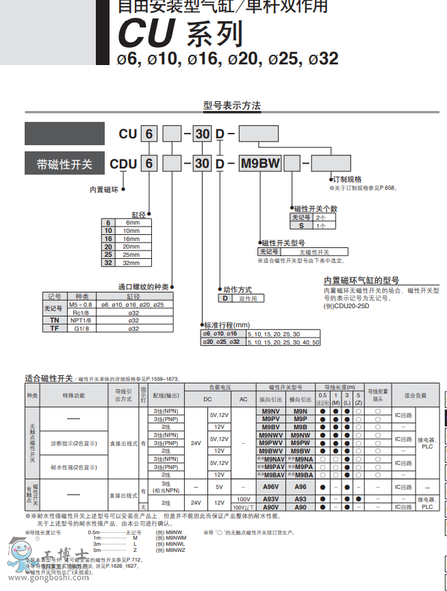 SMC 自由安裝型氣缸 CU系列 CU6TN-25D-XB6