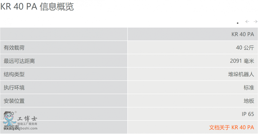 KR 40 PA 是庫卡公司小巧輕盈的貨盤堆垛機器人代表性產品。這款專為貨盤碼垛設計的工業機器人將幫助您獲得快速和高***性 – 歐標托盤碼垛的完美選擇。
