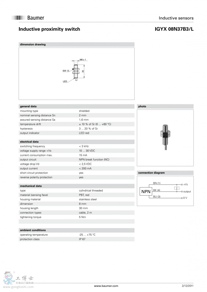 Baumer堡盟電感式接近開關IGYX 08P37B3/L開增值票現貨傳感器 |