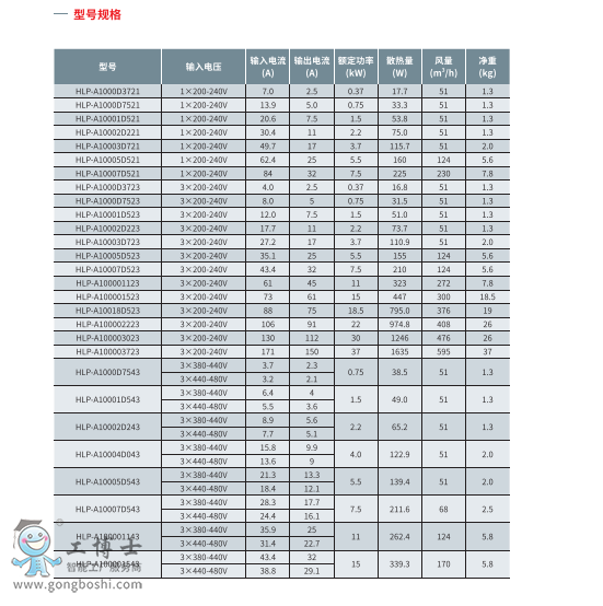 海利普變頻器HLP-A1000D3723電壓3相200-240V功率0.37KW