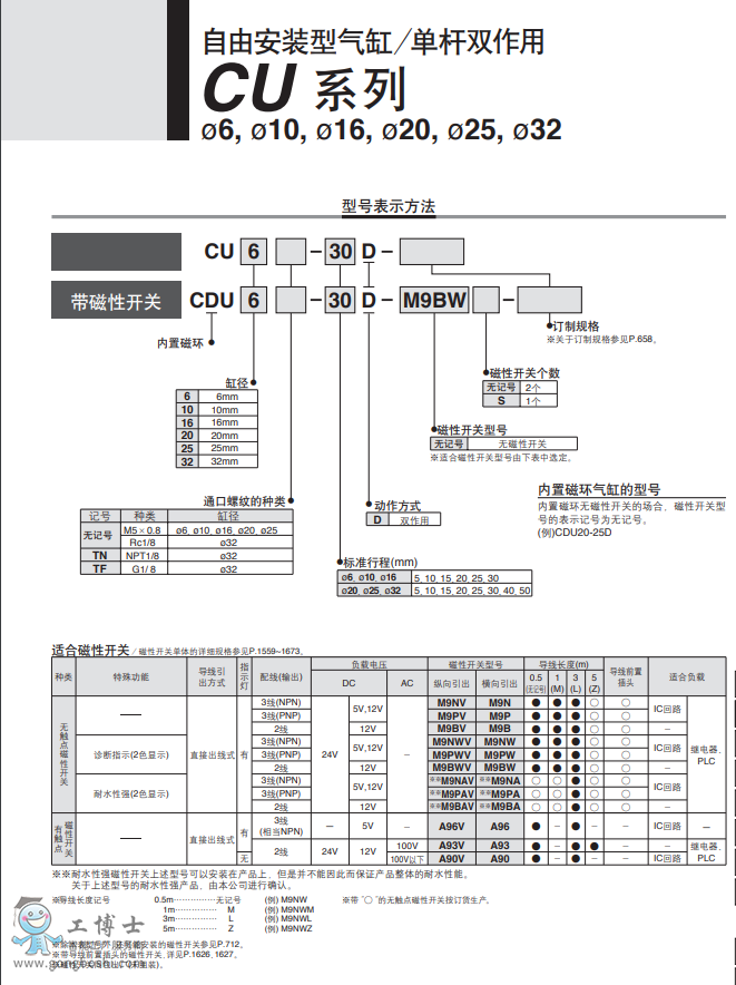 SMC 自由安裝型氣缸 CU系列 CU20TN-20D-XB6