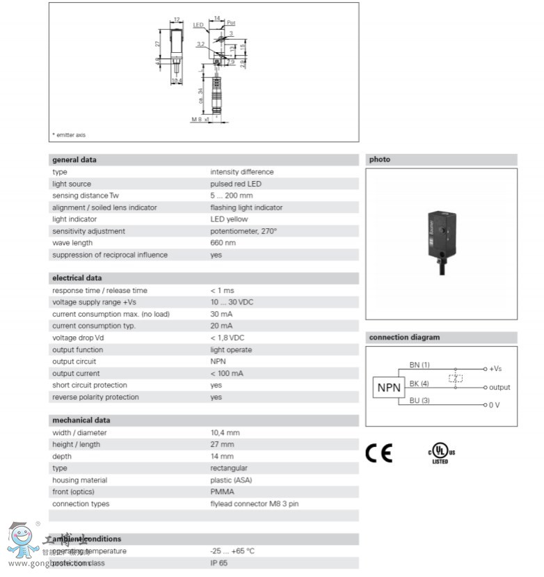 Baumer 堡盟FZDK 10P5101/S35 A漫反射式光電傳感器可開增票現貨 |