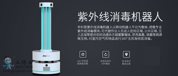 簡介:紫外線消毒機器人以移動機器人平臺為載體,搭載專業紫外線消毒模塊,可代替作業人員進入危險區域、公共區域、無人區域等密閉空間迅速殺滅細菌繁殖體、芽孢真菌、病菌等病原微生物,對室內空氣和物品進行360°無死角徹底消毒。