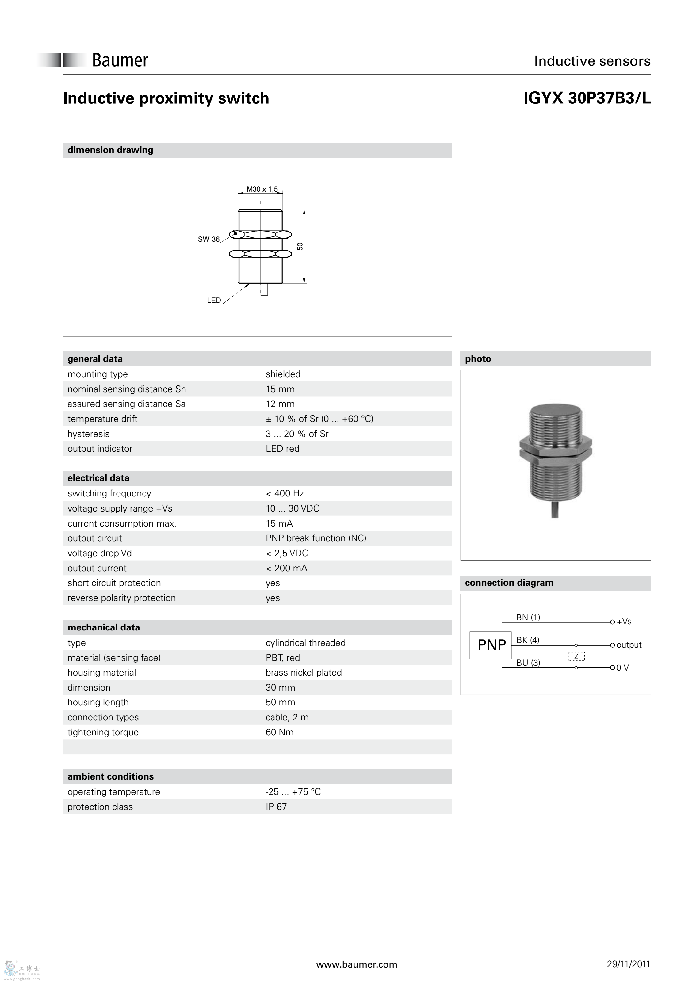 Baumer堡盟電感式接近開關IGYX08P17B3/S35L開增值票現貨傳感器 |