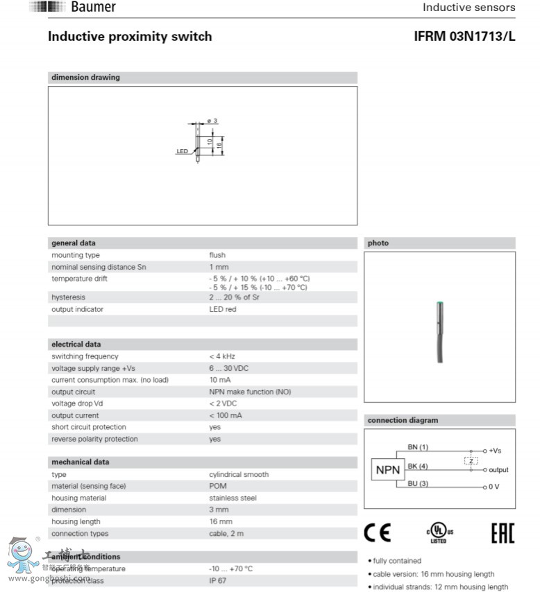 IFRM 03P1713/L 11166541堡盟傳感器Baumer電感式接近開關(guān) |