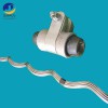 預絞式懸垂線夾由橡膠制成的雙曲線腰鼓形減振墊,減振墊外纏繞鋁合金預絞絲,在預絞絲外,裝高強度鋁合金套殼,套殼外再加上鋁合金U型卡組成。
