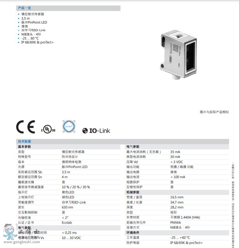 Baumer堡盟鏡反射式光電傳感器O300W.SP.T-11136922開增值票現貨 |