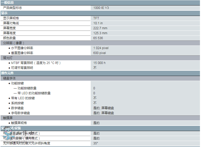 SIMATIC HMI SMART 1000 IE V3, 精智面板, 觸摸式操作, 10” 寬屏 TFT 顯示屏, 65536 色, RS-422/485 接口, 以太網(RJ45)接口, 主機 USB A 型, RTC 支持, 帶 CE 證書, 可項目組態的***低版本 WinCC flexible SMART; 包含開源軟件,