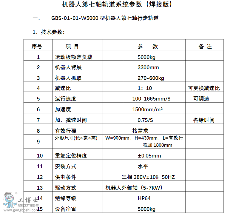 機(jī)器人第七軸軌道 GBS-01-01-W5000