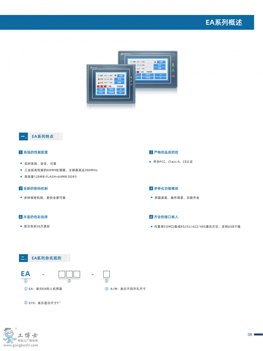 顯控觸摸屏EA系列產品參數
