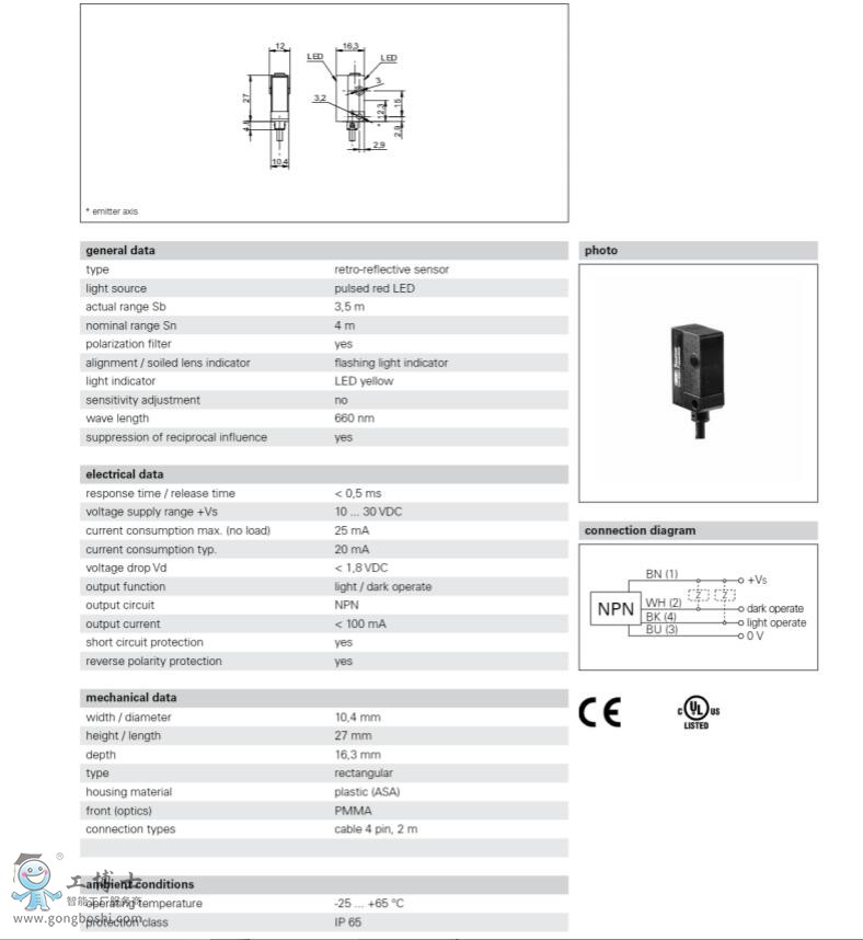 Baumer堡盟鏡反射式光電傳感器FPDK 10P5135/S35 A開增值票 |