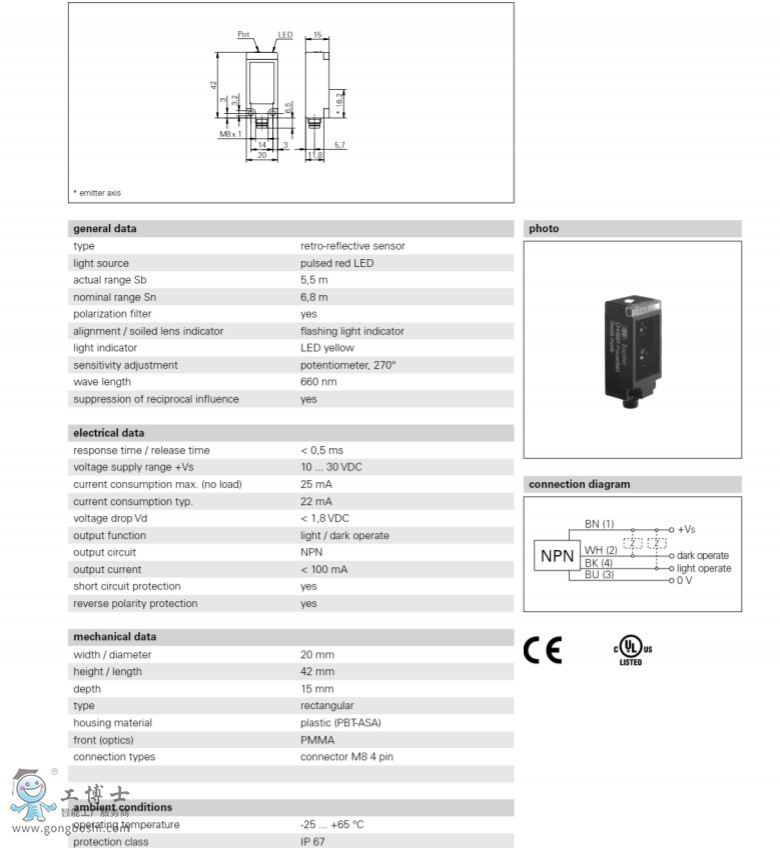 Baumer堡盟FPDK 20P5101/S35 A鏡反射式光電開關傳感器現貨可開增票 |
