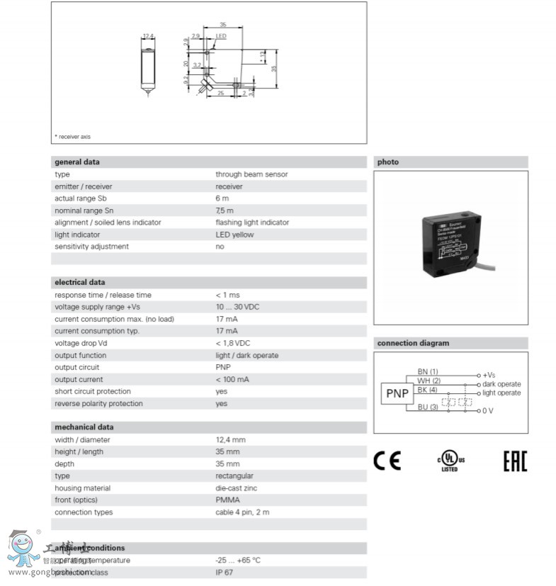 Baumer 堡盟FEDM 12P5101對射式光電傳感器開關傳感器開增票 |