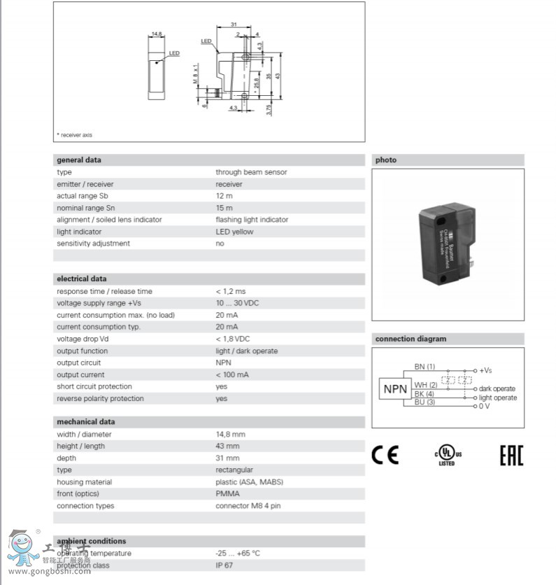 Baumer 堡盟FSDK 14D9601/S35 A對射式光電傳感器開關傳感器開增票 |