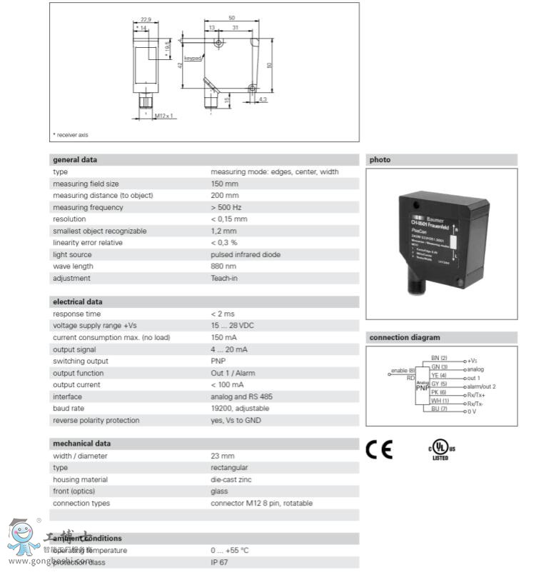 Baumer堡盟測(cè)量傳感器開關(guān)ZADM 023H871.0001傳感器可開增票 |