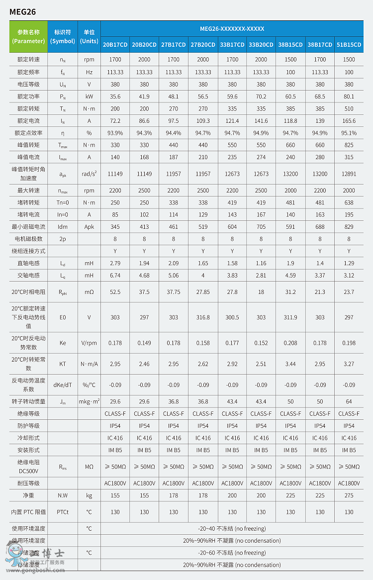 MEG20/MEG26/MEG36液冷系列永磁伺服電機(jī),功率覆蓋8.9-267kw,標(biāo)配23位***值編碼器,控制精度高,采用液冷方案功率密度高、結(jié)構(gòu)緊湊,同時使其在惡劣環(huán)境下仍可長時間可靠運(yùn)行,對油污、震動、粉塵、高溫等環(huán)境適應(yīng)性強(qiáng)等特點(diǎn)。
