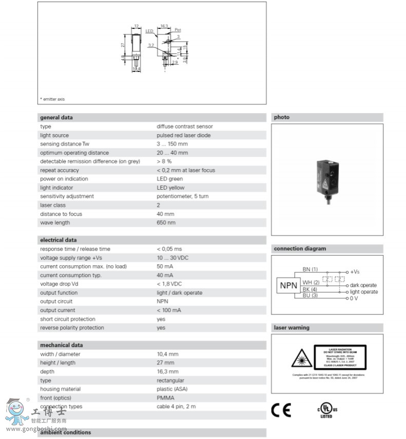 Baumer 堡盟OZDK 10P5101漫反射式色標光電傳感器開關傳感器 |