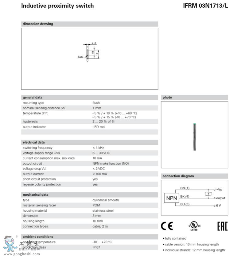 Baumer 堡盟IFRM 03N3713/QL開關傳感器電感式接近開關可開增票 |