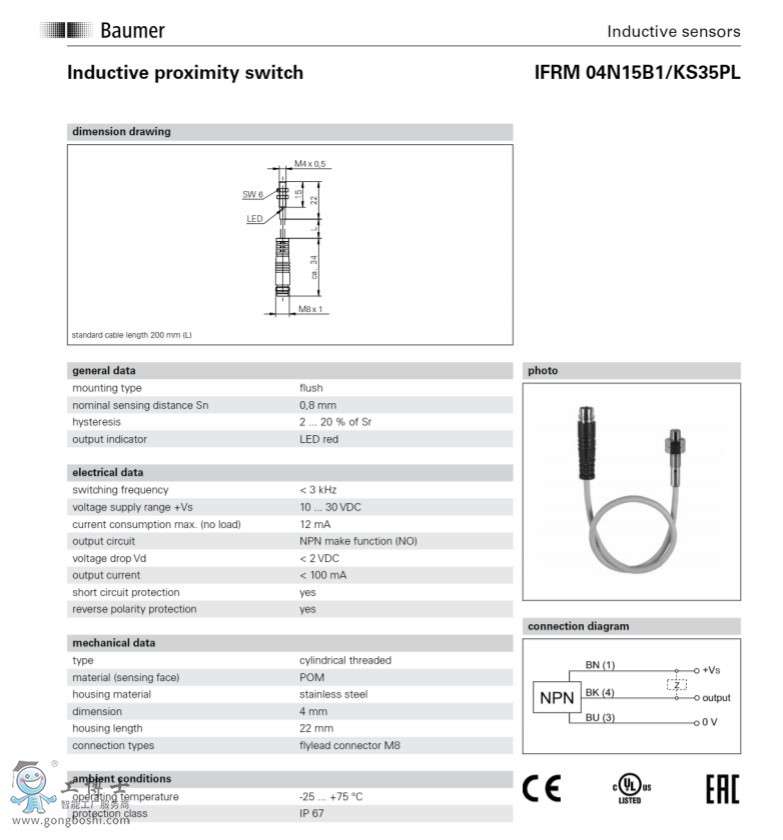 IFRM 04N15B1/KS35PL電感式接近開關-Baumer堡盟接近開關傳感器現貨可開增票 |
