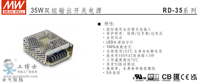 明緯電源RD35B雙組開關(guān)電源大量現(xiàn)貨