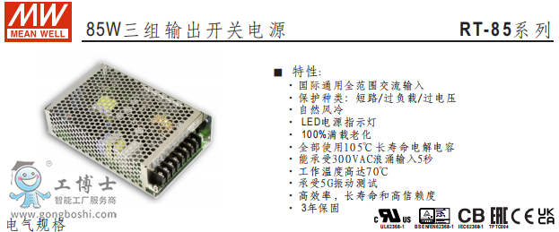 明緯電源RT-85三組輸出開關電源現(xiàn)貨C系