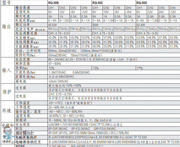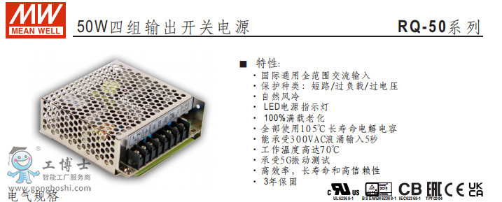 明緯電源RQ-50W四組輸出開關電源現貨B系